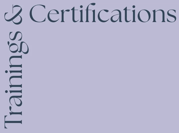 I am also certified in Eye Movement Desensitization and Reprocessing (EMDR) and somatic-based therapy, with additional training in Collaborative Assessment and Management of Suicidality (CAMS), crisis and de-escalation support, Cognitive Behavioral Therapy (CBT), attachment wounds and disorders, and Dialectical Behavioral Therapy (DBT).